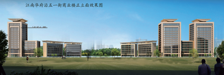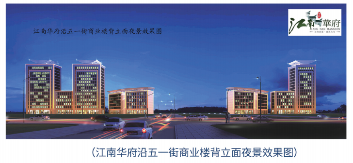 (江南华府沿五一街商业楼正立面夜景效果图)